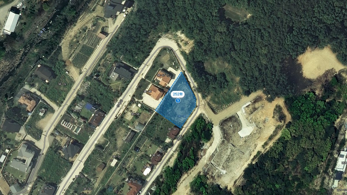 | 특징 | 북서향,나대지(전용비X),보완토목필요,공동지하수,하천인근,면소재지800m,버스도보,전용251.98평+도로지분76.74평 |
