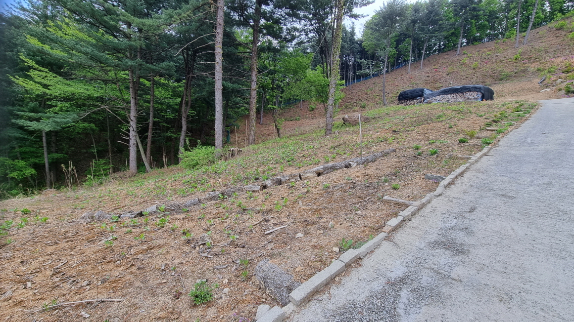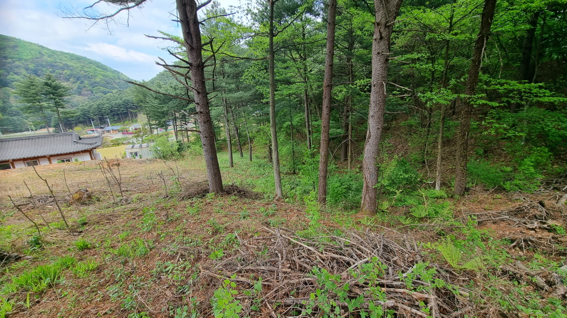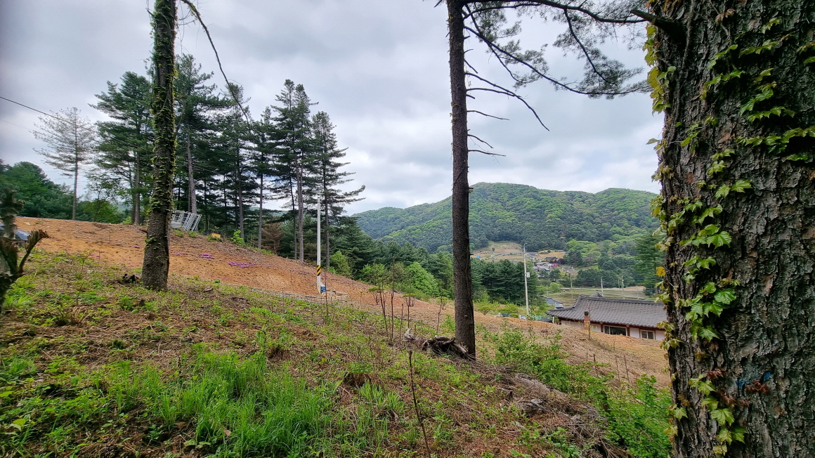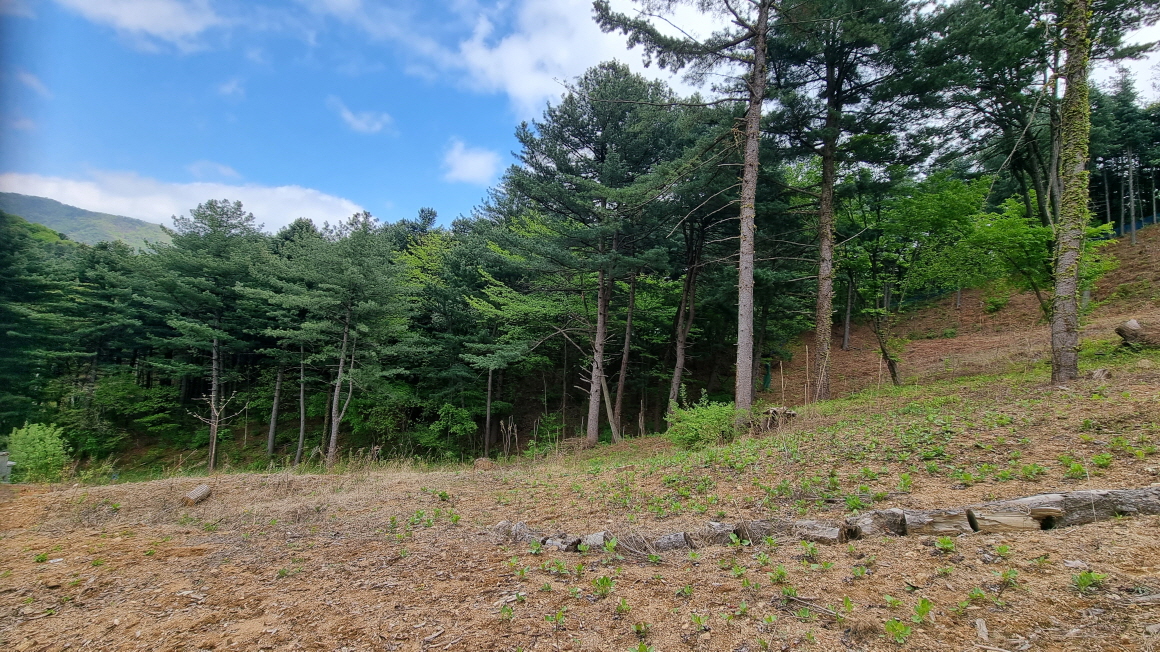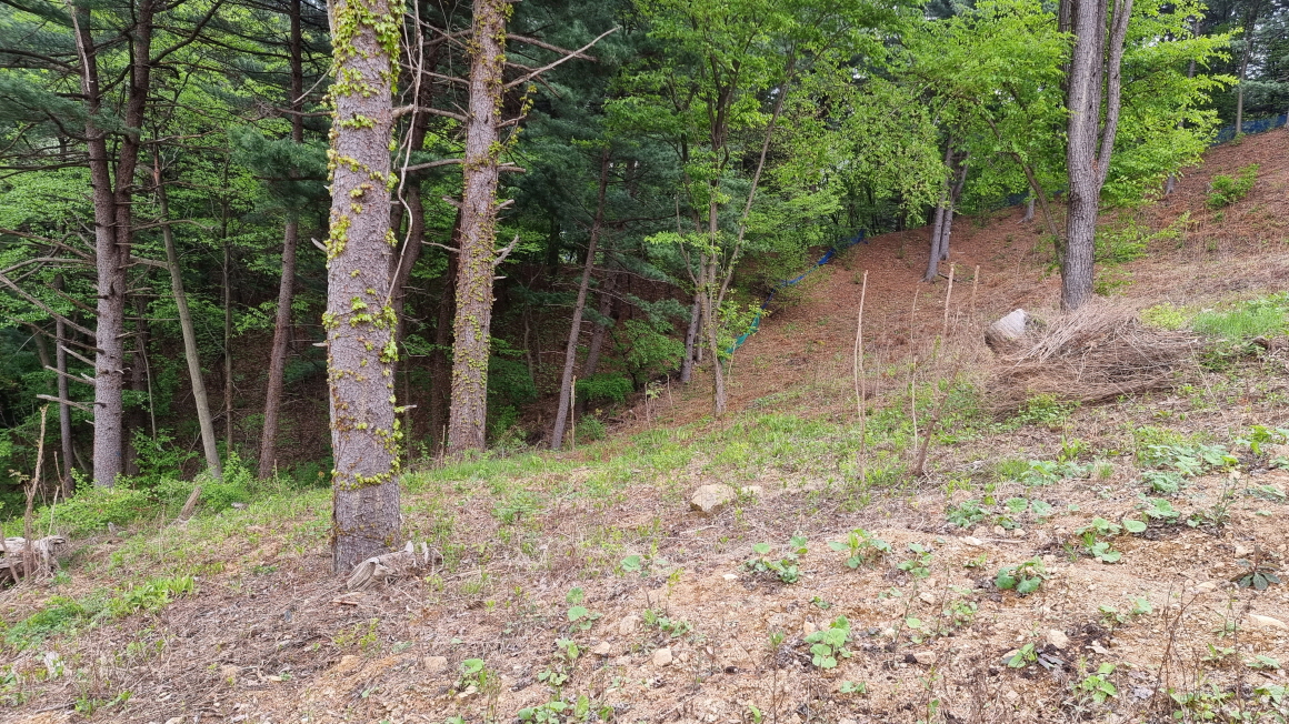 침엽수림으로 둘러싸인 완경사지 임야