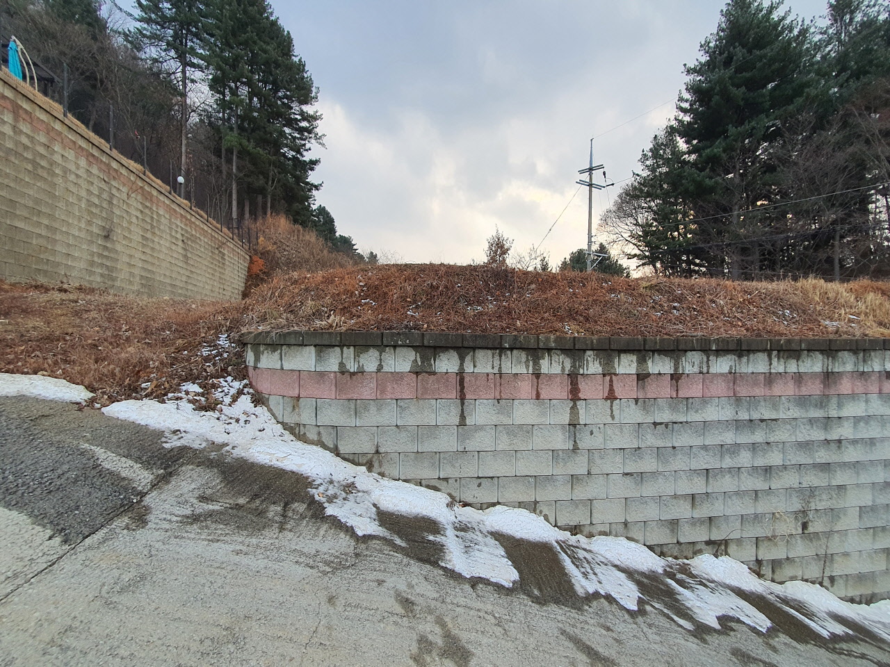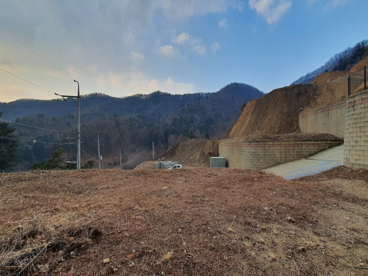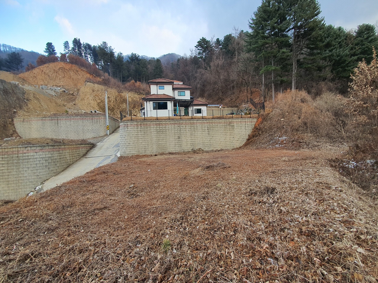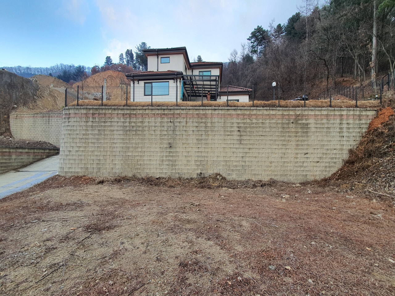 상태평탄화 및 도로포장이 되어 있고 보강토블럭으로 토목완료된 상태입니다.