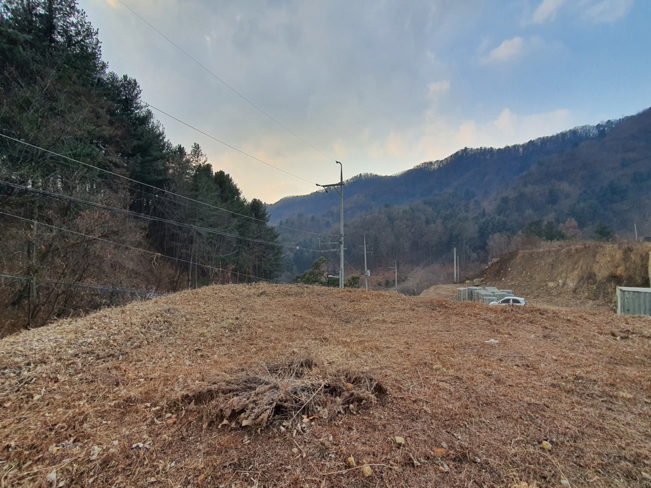 전원주택이 들어서는 중이며 제일 초입 토지입니다.