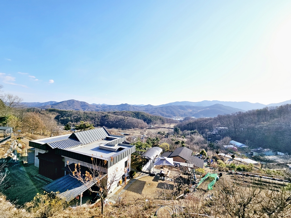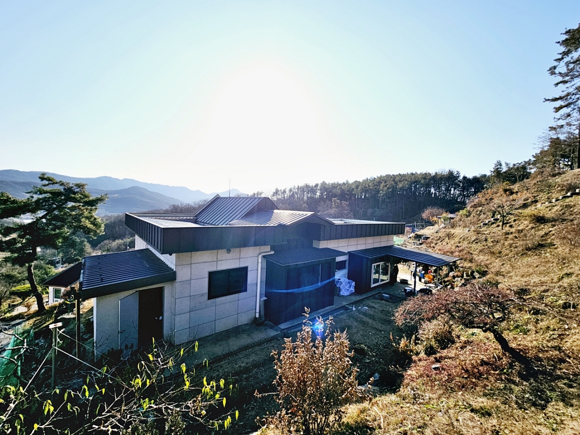 조망좋고 산자락 접한 동남향의 전원주택