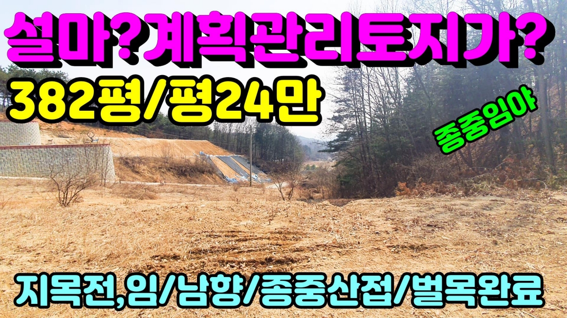 특징 남향,평탄지,통매매및 분할매매가능,아늑한입지,산자락접,전망트임,토목필요,벌목완료