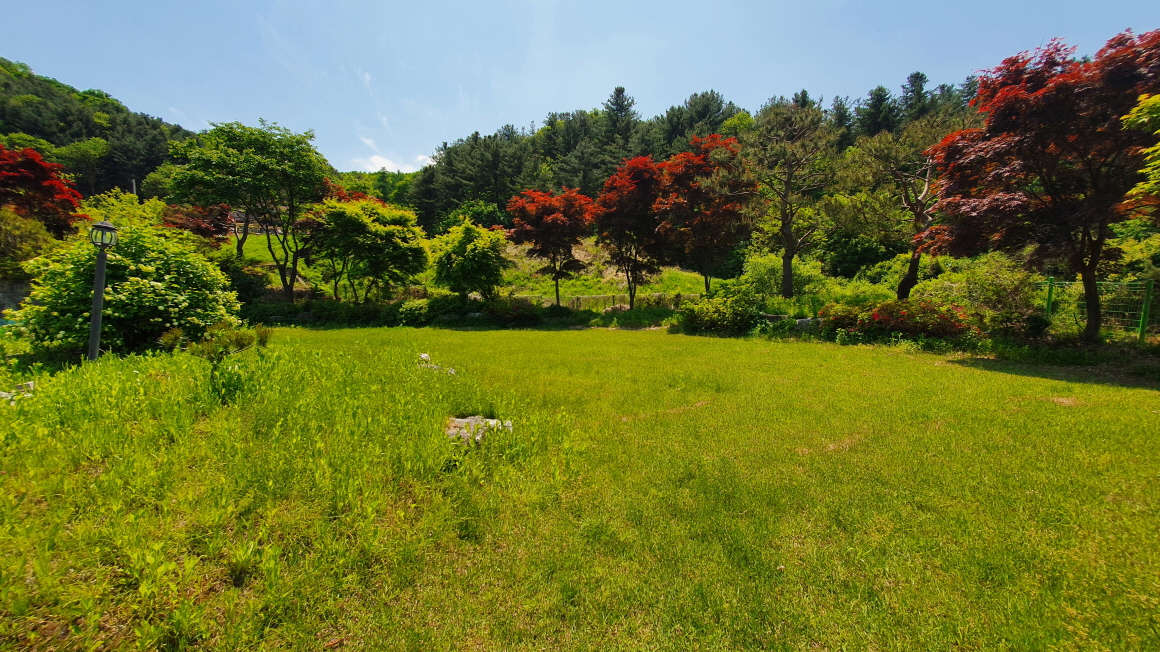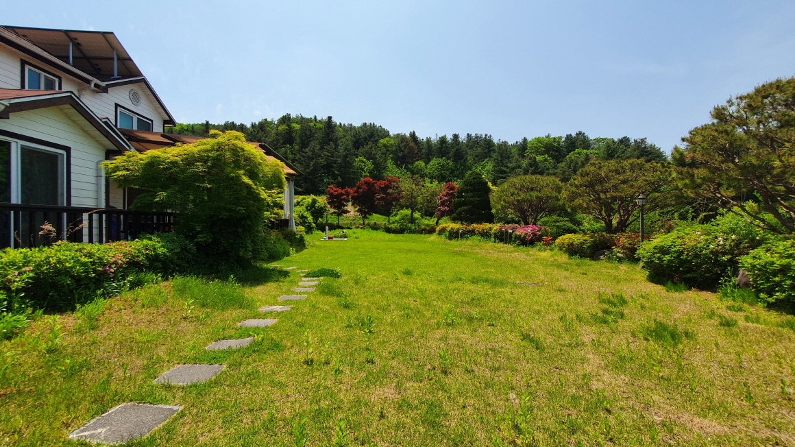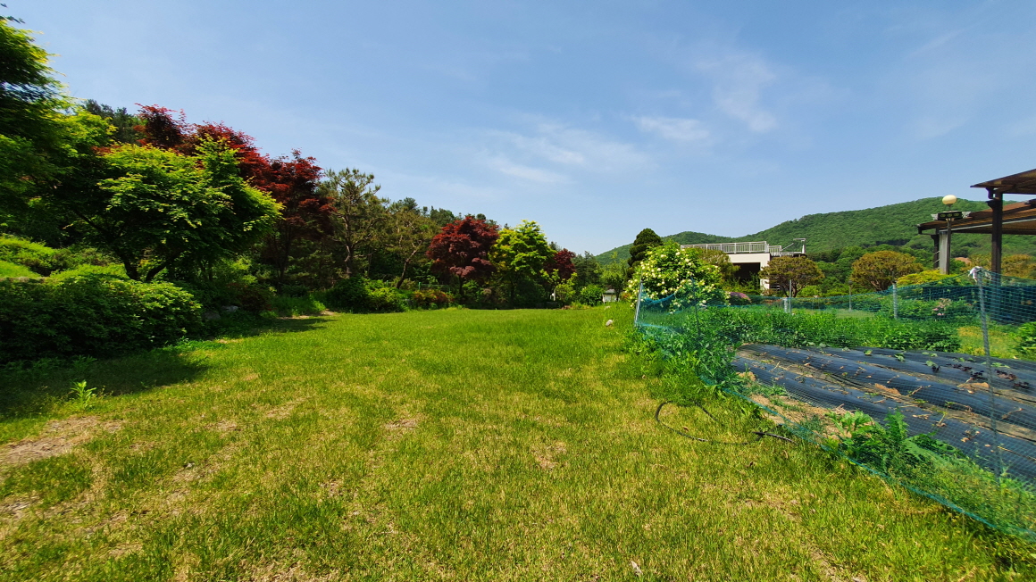 잔디마당 과 정원수 관리가 우수하고 넓은 텃밭이 있으며,