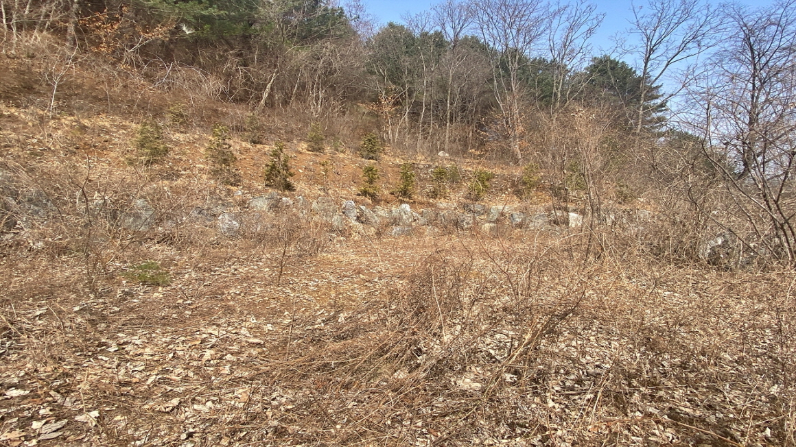 산자락 접한 부분에는 나무가 식재되어 있습니다.