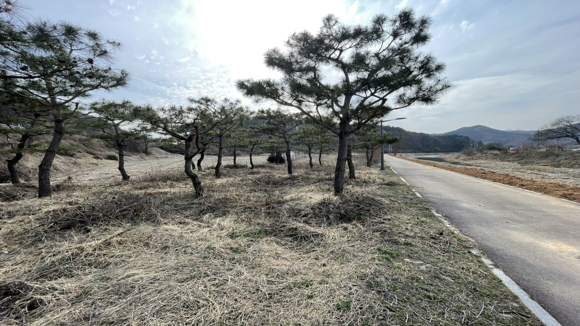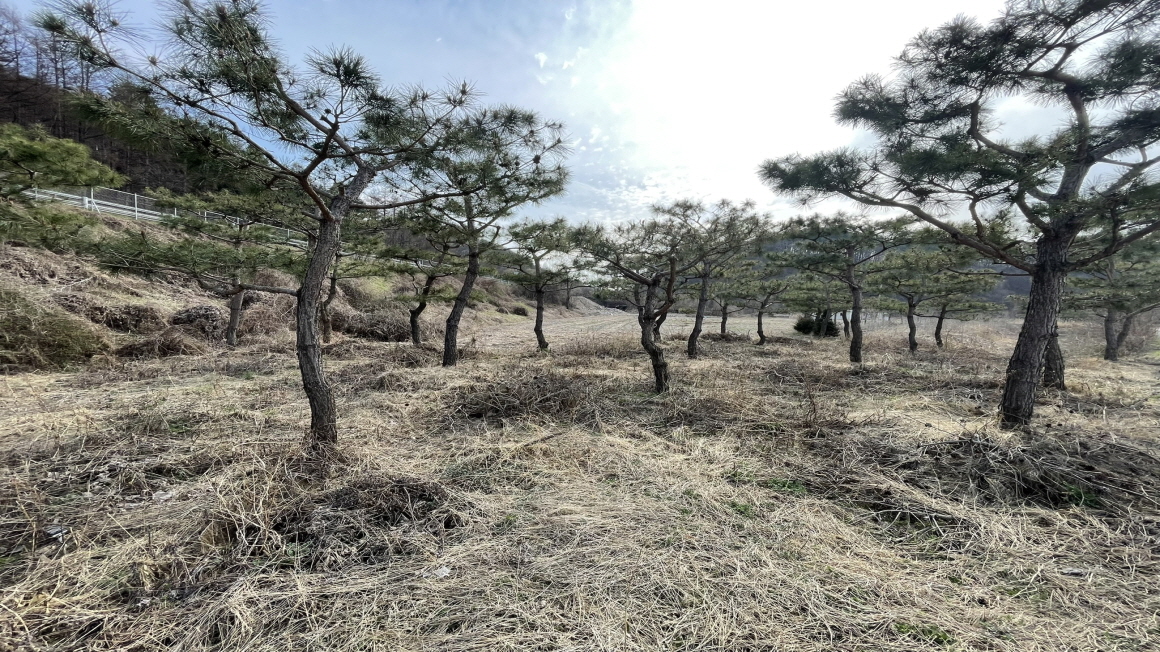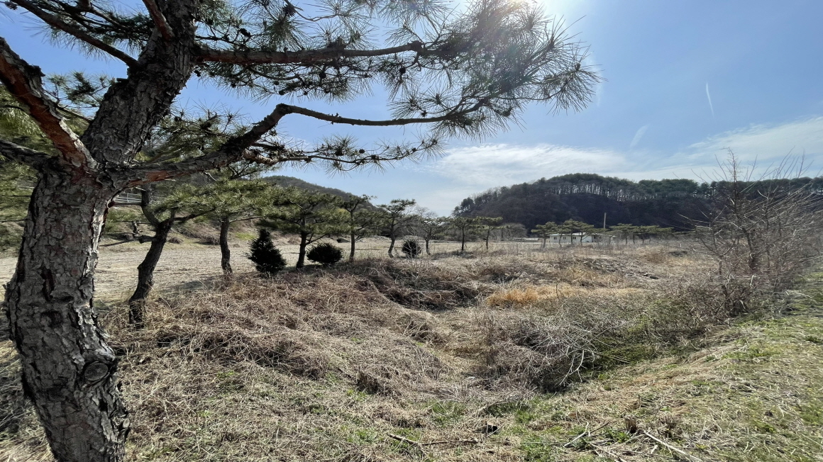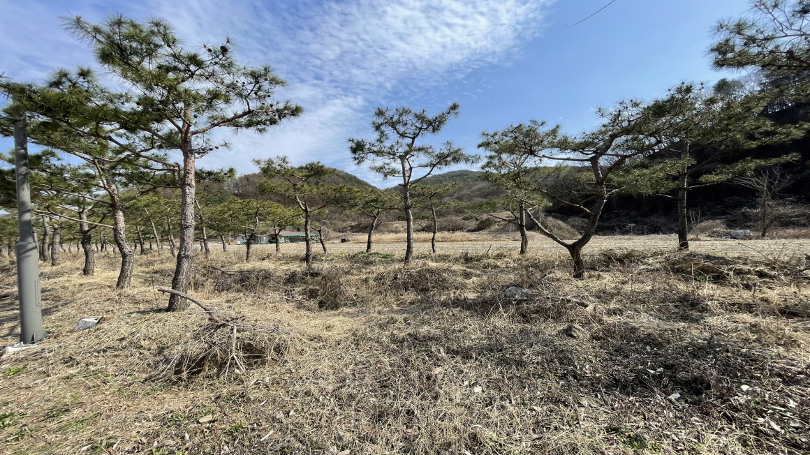 상태현재 소나무700그루가 식재되어 있으며 일부성토완료되어 있고 농작물을 심을예정입니다