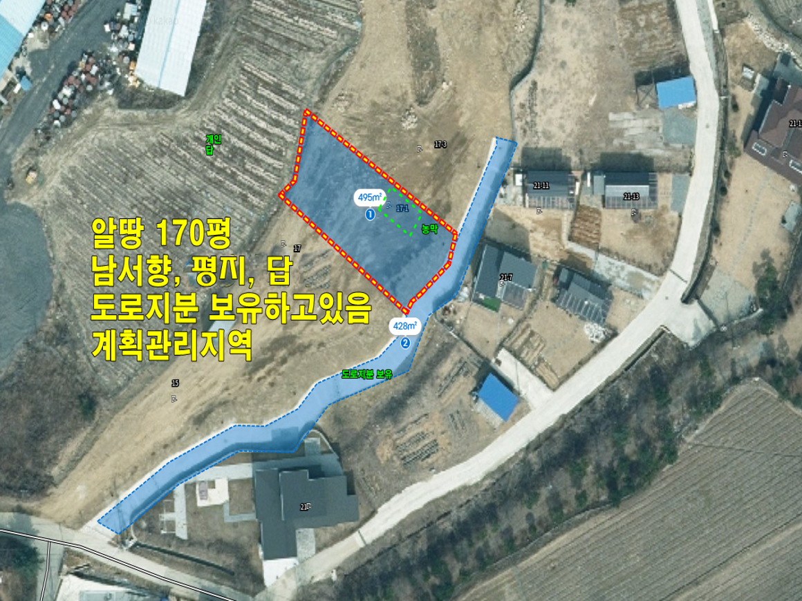 | 용도지역 | 계획관리 | 추천용도 | 농막,주말농장 | ||||||||||||