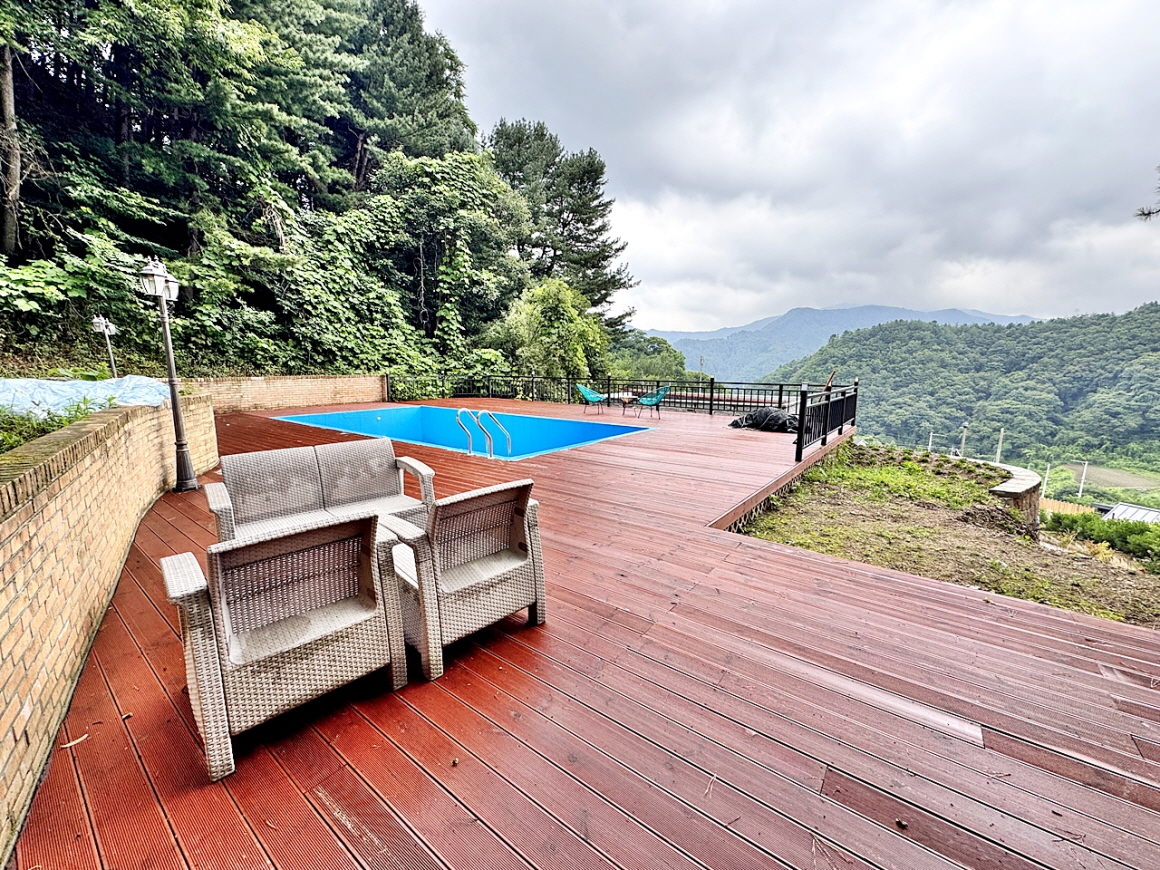 특징 | 남향,상수도,지하수,3동(총객실 7),야외수영장,cctv,도로지분 38평 | ||||||||||||||