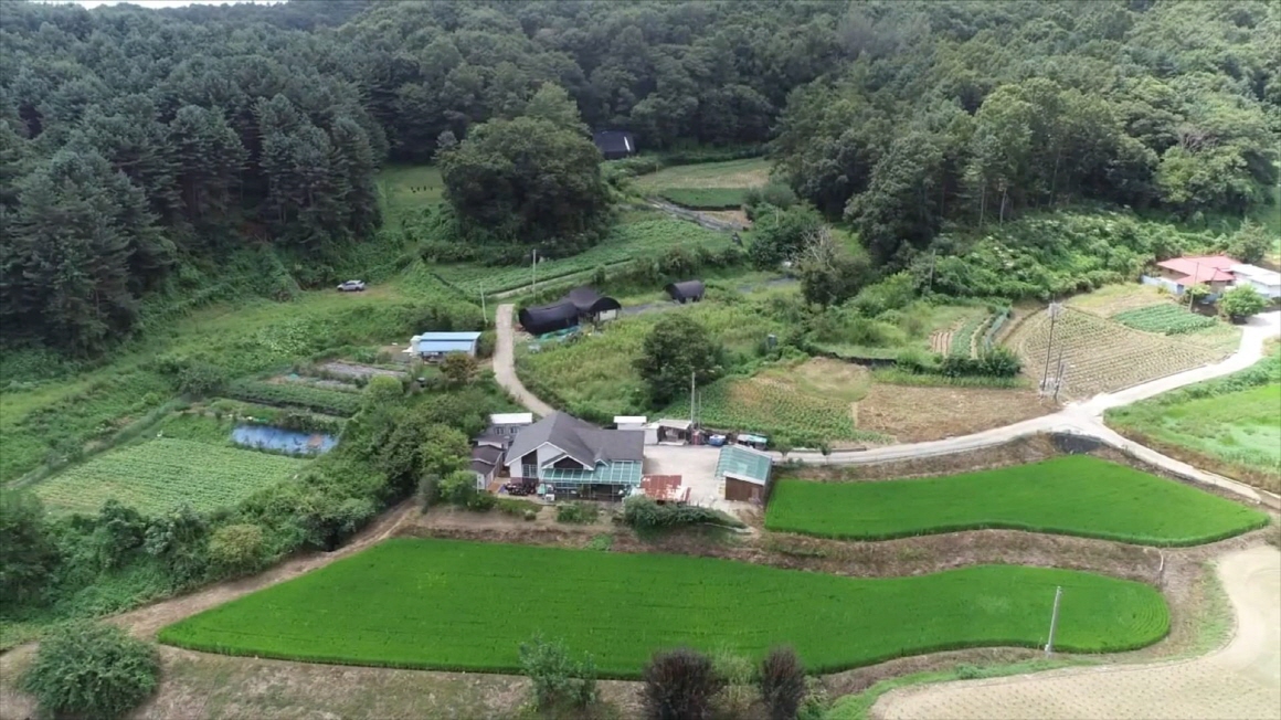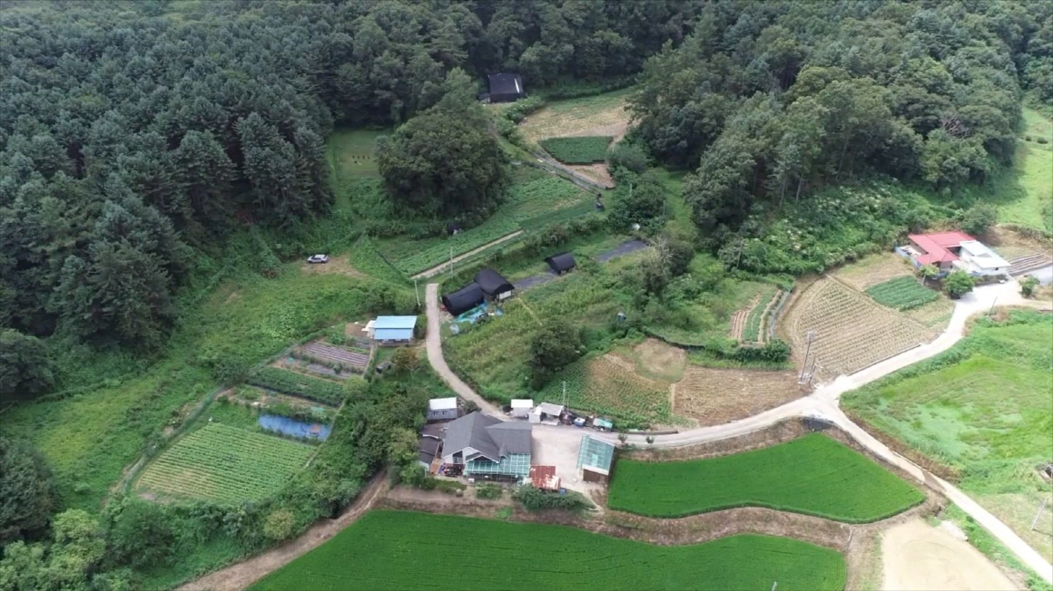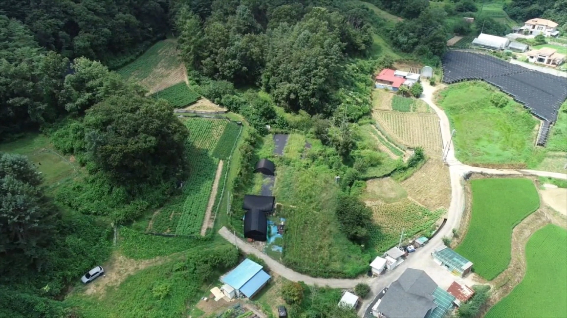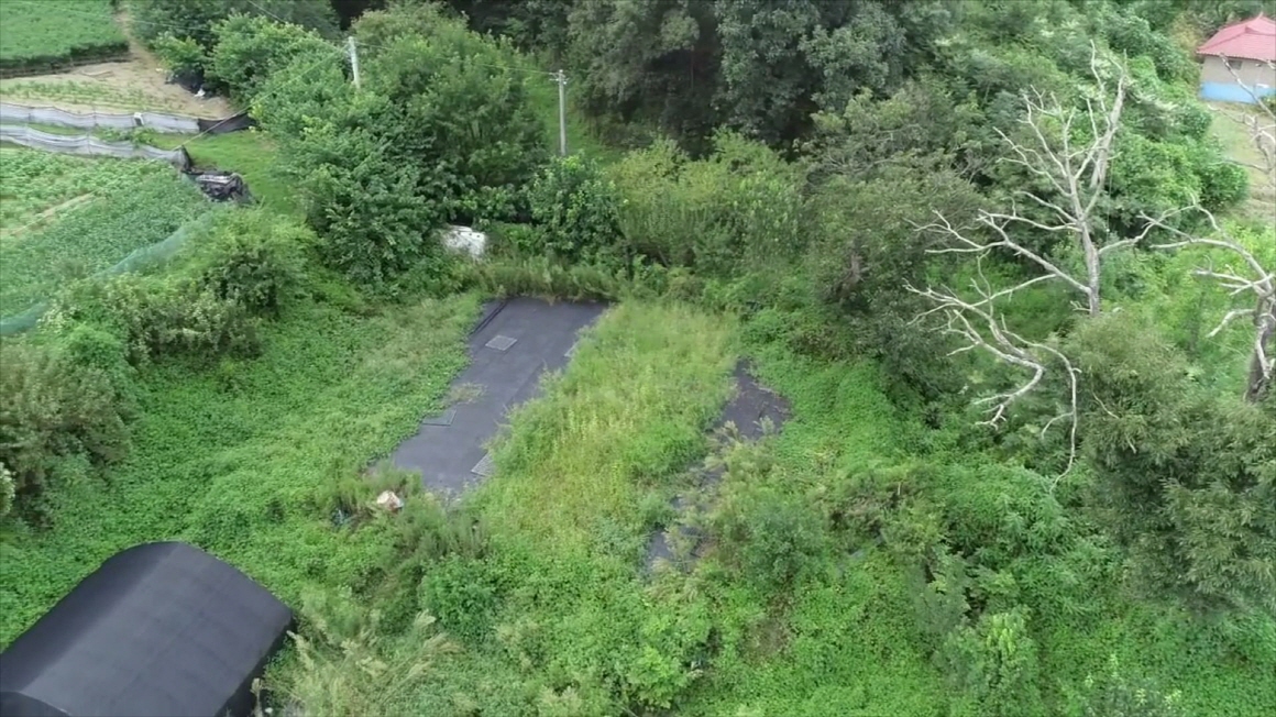 나즈막한 산으로 감싸고 있는 평온한 마을내 농막이 있는 알짜 토지