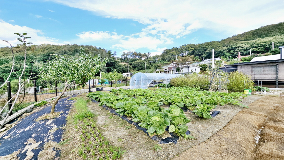 넓은 마당에 텃밭이 크고 소형 비닐하우스가 설치 되어 있으며,