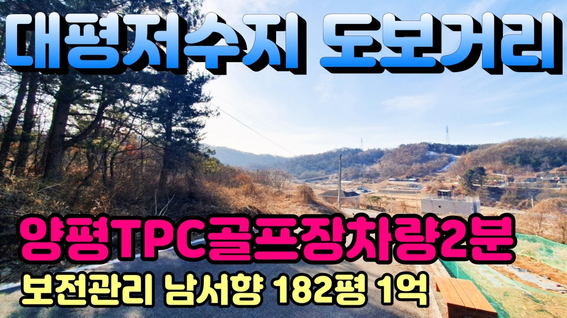 특징 남서향,자연림임야,토목요함,완경사지형,시원한 조망권,대평저수지도보,도로지분 약14.4평,지평역 7.7km