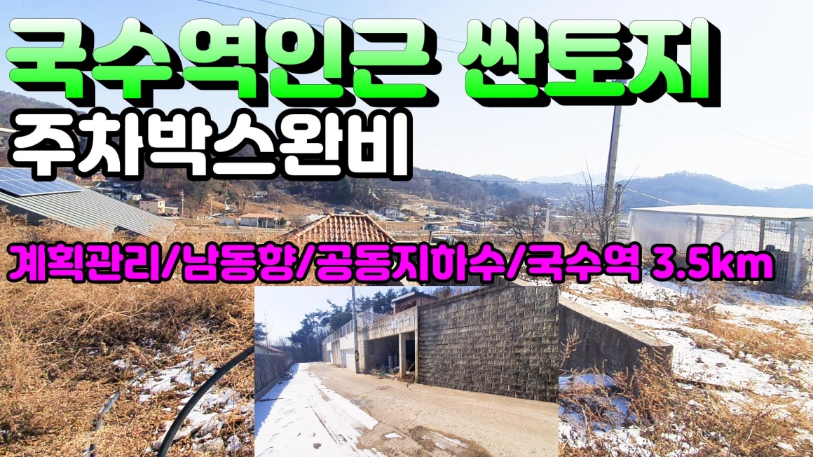 | 특징 | 남동향,단지형,주차박스,공동지하수(4세대),단지내 6m도로,약16세대 개발,도로지분 0.3평,국수역 3.5km | ||||||||||||||