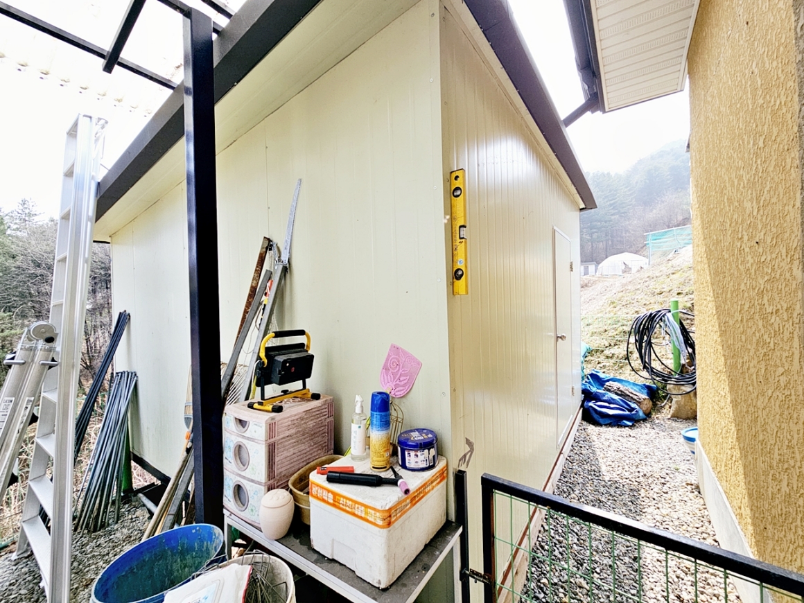 | 특징 | 북향,지하수,정화조,블럭구조,창고,구들방,태양광,국도에서 1km 이내거리,도로지분 59.5평 |