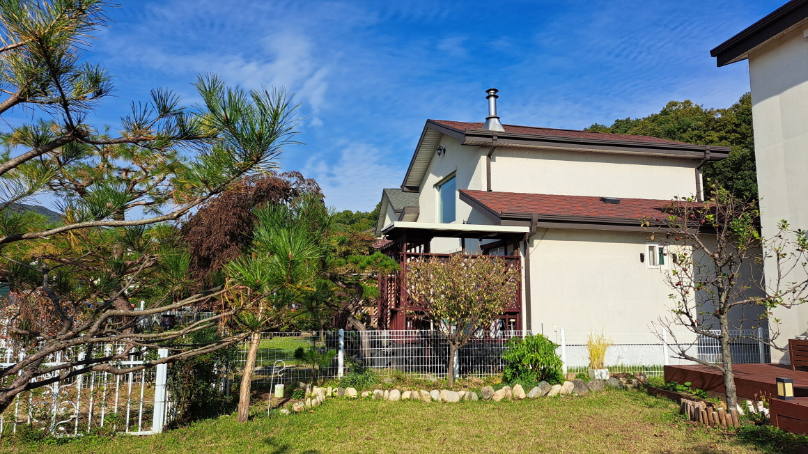 편안한 마을에 조성된 아담한 전원주택으로 흑천이 인근에 있어 산책하기 좋습니다.