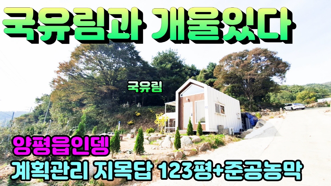 | 특징 | 남동향,지하수,정화조,국유림접,구거접함,토목완료,마을내,남동향,알땅,양평역 5.3km | ||||||||||||||