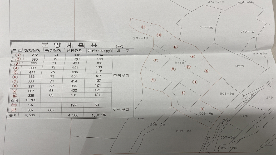 특징 남동향,공동지하수,정화조,성덕천인근,2차선도로변,분양토지,전용112.8평+공유면적20.9평
