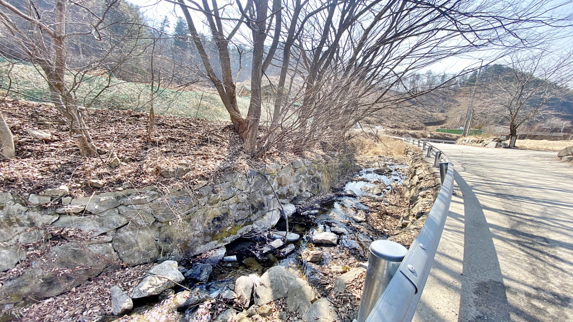 문호천이 흐르는 전원마을내 자연스런 정남향 토지