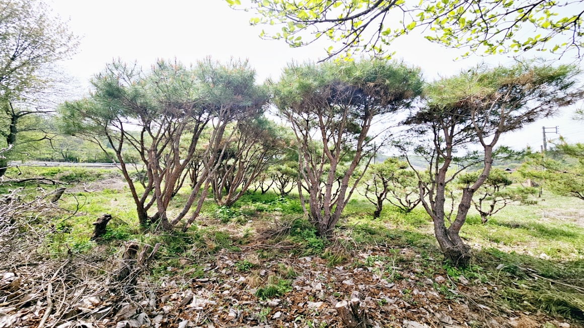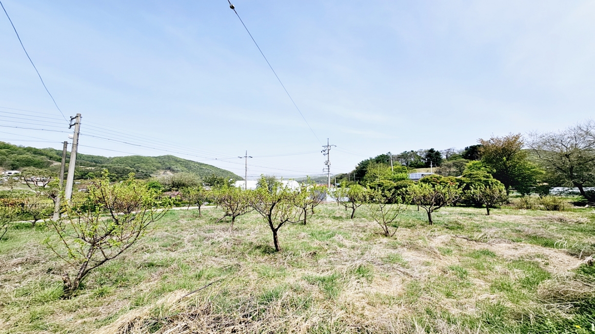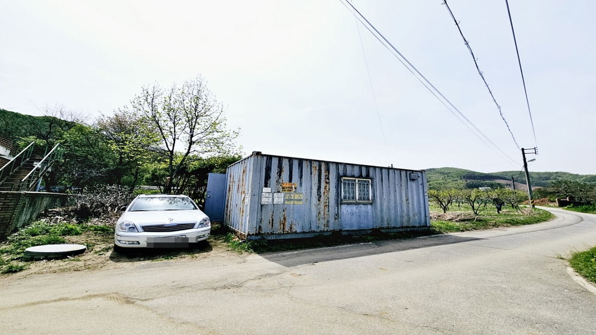 평탄지형에 무허가 컨테이너 농막1동과  매실나무 40그루가 식재 되어 있고